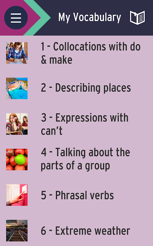 واژگان من - واژگان را از هر درس بازیابی کنید و کلمات ، عکس ها و صداهای خود را اضافه کنید.