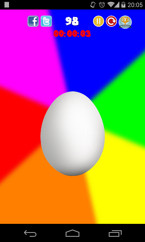 Just touch the egg as fast as you can to set the counter to 0. Try to beat the best times of our ranking and be the fastest, you can pause the game anytime and continue whenever you want.