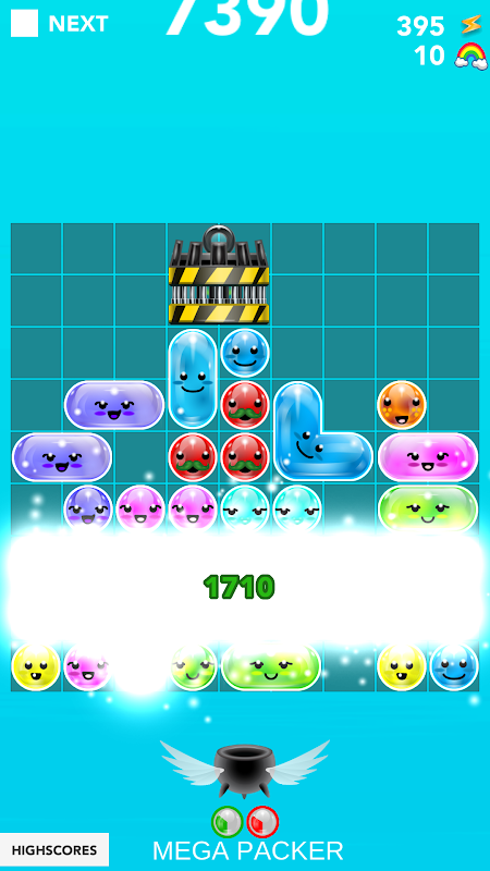 Try to connect three or more shapes of the same color, or just pack them together to make rows without gaps.