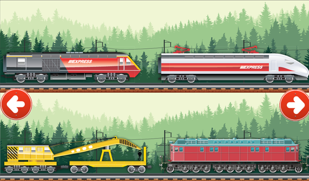 بازی برای کودکان "متحرک پازل قطار". ارائه می دهد دوازده مدل از قطارهای مسافری با سرعت بالا و حومه، پس از توشه، گردش، محموله، نام تجاری، قطار پرنعمت، قطار حمل و نقل، آتش سوزی قطار، مرمت، لکوموتیو، لکوموتیو برقی، لکوموتیو دیزل، بلوس برف و سایر مدل جالب است قطار.