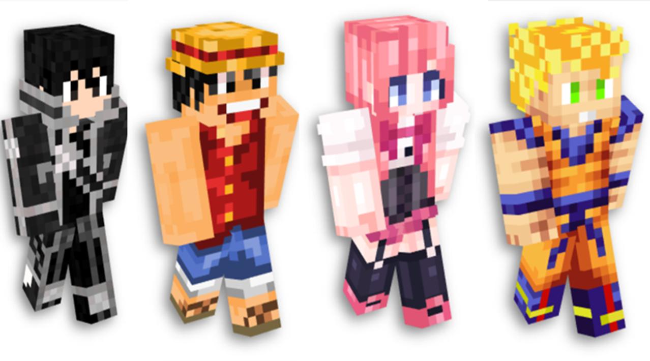 شخصیت های انیمه مورد علاقه با پوسته برای Minecraft PE. بیش از 400 پوسته از انیمه