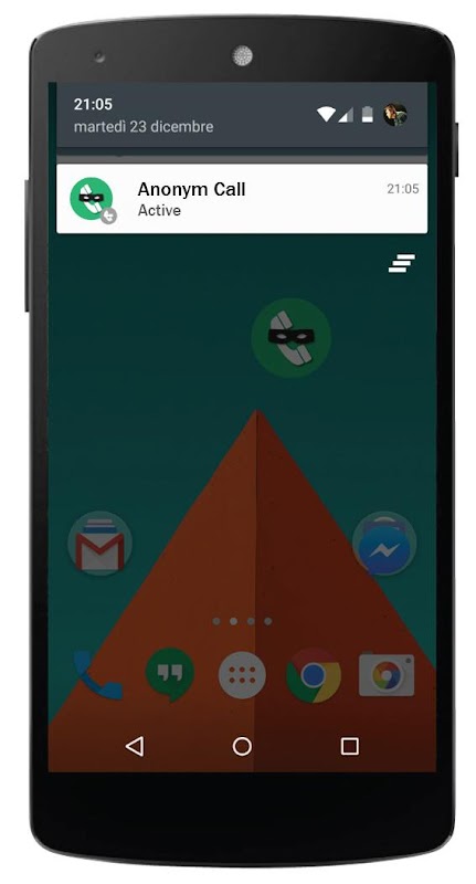 - Bar status notification, which indicates when the application is active in anonymous call