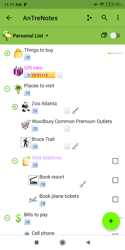 AnTreNotes (دمو) یک برنامه فهرست یادداشت سلسله مراتبی است. امکانات: