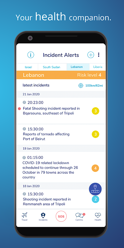 این برنامه همچنین منبع تلفیقی از سلامت به روز و هوش خطر برای همه کشورها و شهرهای بزرگ در سراسر جهان را ارائه می دهد. تمرکز بر حقایقی که می تواند به آنها کمک کند تا از کارمندان در محیط های نامشخص یا ناآشنا پشتیبانی کنند. این شامل جزئیات آخرین محدودیت های اعمال شده توسط دولت ها در مورد Covid-19 است.