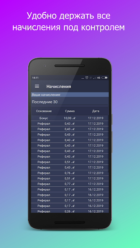 • Подробная история начислений и списаний, как в монетах, так и в рублях.
