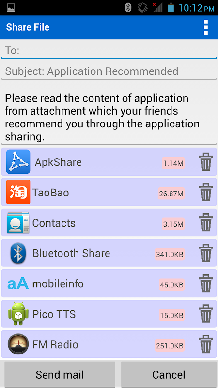 * به اشتراک گذاری اسناد: شما می توانید برنامه را به دوستان خود از طریق پست الکترونیکی، بلوتوث، و غیره ارسال ایمیل از طریق جیمیل، حداکثر پیوست را می توان 25M. از این رو پیشنهاد کرد که شما با استفاده از آن بهتر است در یک محیط شبکه خوب است.