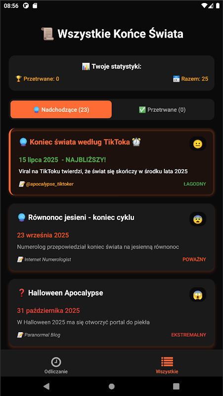 به جای تعلل، از "فشار زمان" به روشی سرگرم کننده استفاده کنید! این برنامه پیشبینیهای پایان جهان (از تقویم مایاها تا تئوریهای مدرن از یوتیوب و فیسبوک) را با یک سیستم وظیفه ترکیب میکند که واقعاً کار میکند.