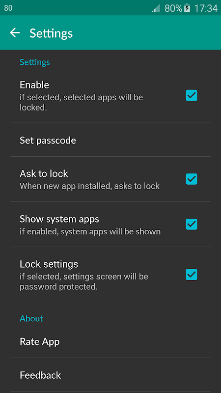 Open 'App Locker', Settings, Set passcode