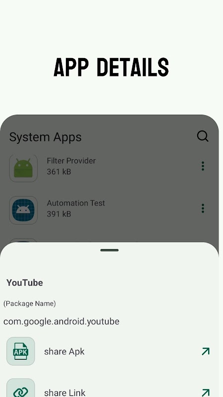 برنامه مدیریت برنامه شما دارای ویژگیهای زیادی است مانند نمایش مجوزهای برنامه، استفاده از داده برنامه شبکه Wifi یا تلفن همراه، استفاده از باتری، اشتراکگذاری فایل Apk برنامهها و موارد دیگر در بهروزرسانی