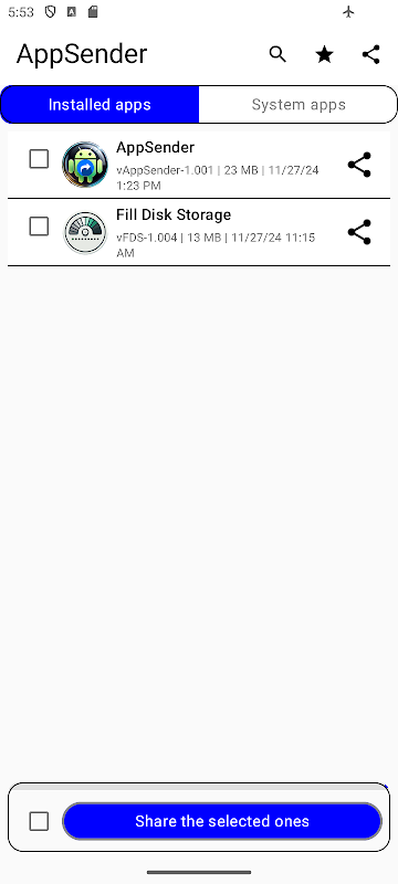 با App Sender، به اشتراک گذاری و مدیریت برنامه های شما هرگز آسان تر نبوده است. یک یا چند برنامه نصب شده در دستگاه خود را به سرعت و بدون دردسر برای دوستان و خانواده ارسال کنید.