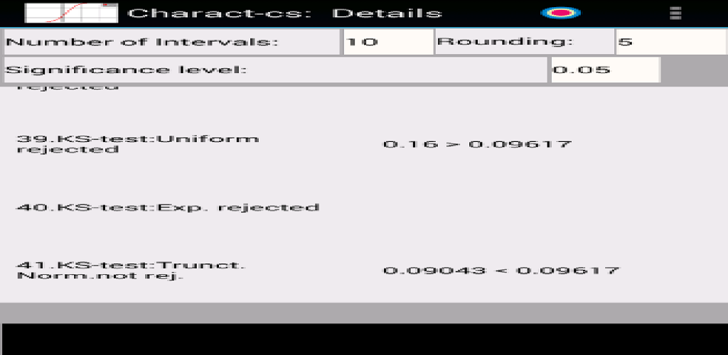 این برنامه برای ذخیره (ویرایش، حذف، تغییر نام) نمونههایی از متغیرهای تصادفی طراحی شده است تا ویژگیهای آماری اولیه آنها را به صورت زیر محاسبه کند: -مقدار متوسط. - انحراف معیار؛ - چولگی و کشیدگی؛ - برای محاسبه فواصل اطمینان از مقدار متوسط. - واریانس و انحراف معیار؛ - بررسی کنید که آیا نمونه از متغیر تصادفی نرمال یا یکنواخت توزیع شده با استفاده از معیار پیرسون است. - بررسی کنید که آیا نمونه از متغیر تصادفی نرمال، یکنواخت و نمایی توزیع شده با استفاده از معیار کولموگروف اسمیرنوف است. - و چولگی و کشیدگی صفر; - تعیین هیستوگرام نمونه و هیستوگرام هموار.