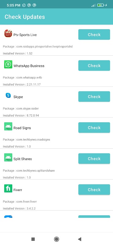 برنامه برای بررسی تمام به روزرسانی های برنامه های نصب شده از تلفن در یک صفحه.