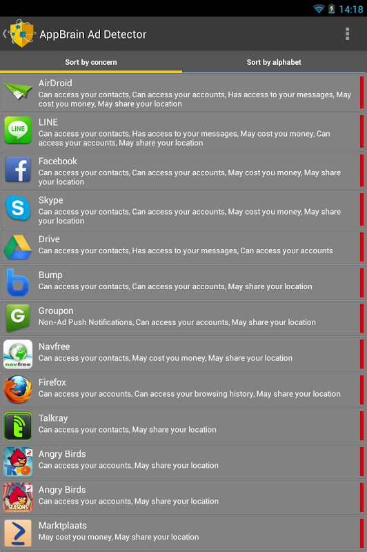 رایگان تلفن خود را از نرم افزارهای جاسوسی و تبلیغات بالقوه! این برنامه تمامی ناراحتی های برنامه های نصب شده بر روی گوشی شما را تشخیص می دهد، مانند آگاه شدن از طریق فشار، آگهی های تبلیغاتی مزاحم آیکون دسک تاپ و برنامه های با نگرانی های امنیتی و یا نرم افزارهای جاسوسی. این ابزار تبلیغاتی را شناسایی می کند و به شما این امکان را می دهد تا برنامه هایی را که حفظ حریم خصوصی شما را نقض می کنند حذف کنید.