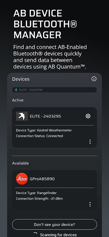• مدیریت دستگاه جدید Bluetooth® - دستگاه های AB Bluetooth® را به سرعت پیدا و متصل کنید و داده ها را با استفاده از AB Quantum Connect™ بین دستگاه ها ارسال کنید.