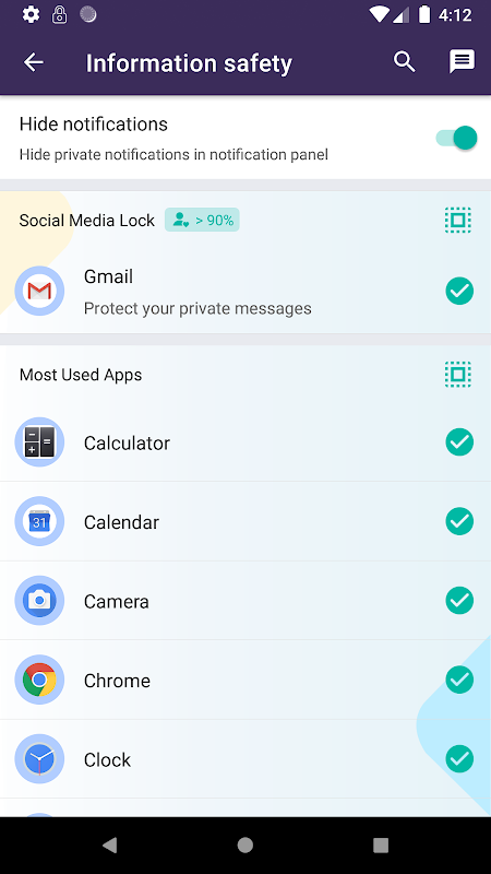 - فیس بوک، واتس اپ، اسنپ چت، مسنجر، گالری و سایر برنامه های مهم خود را قفل کنید که ممکن است حریم خصوصی شما را لو دهد.