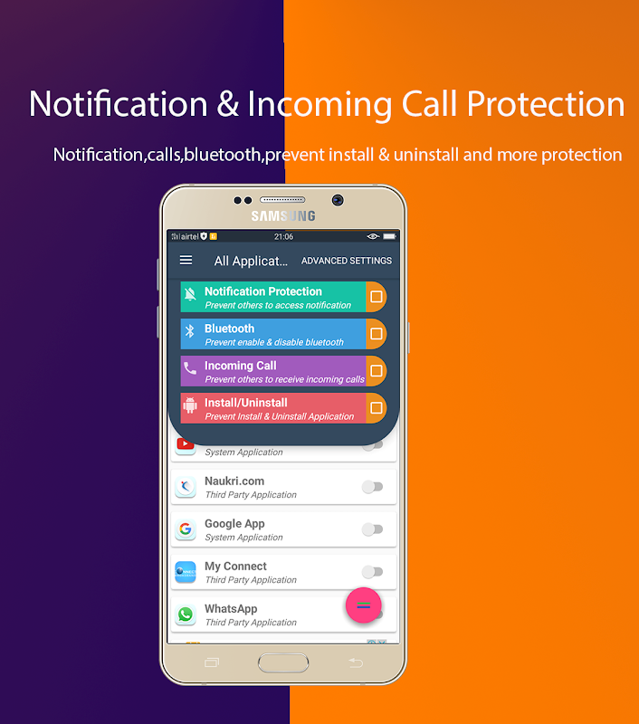 ★ App lock privacy gaurd prevent to uninstall feature.