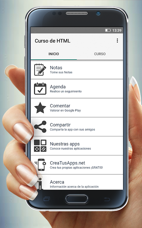 En esta aplicación podrás aprender HTML intermedio, podrás crear tu primera página web básica y comprenderás las mejoras que proporciona el nuevo HTML5.
