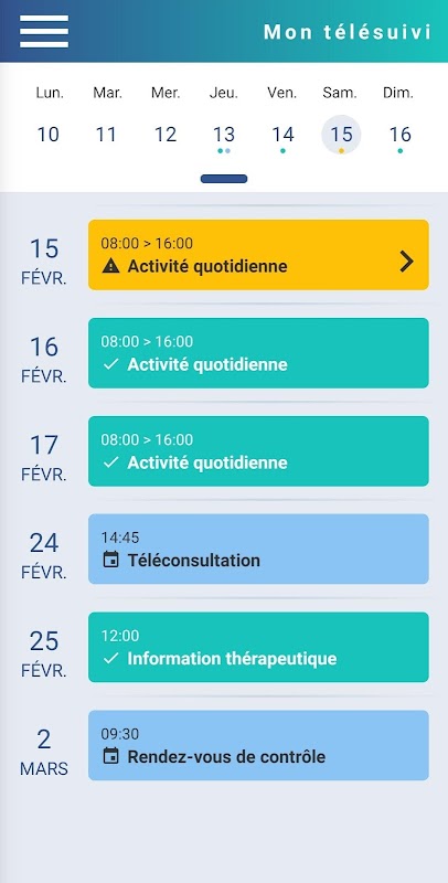 این برنامه یک دستور کار با لیستی از اقدامات روزمره برای انجام ، ورود و نظارت بر ثبات و شاخص های پزشکی ، مشاوره با محتوای متناسب با آسیب شناسی بیماران و فضایی برای تبادل پیام و اسناد امن را ارائه می دهد. با تیم های پزشکی