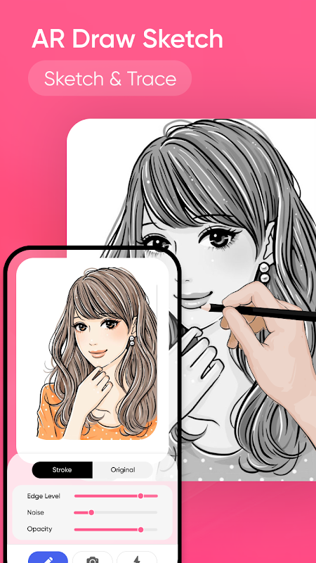 AR Draw Sketch Sketch & Trace به شما امکان می دهد هر سناریوی زنده یا هر عکسی را به راحتی به هنر طراحی تبدیل کنید. یکی از عکس های مورد علاقه خود را از گالری انتخاب کنید یا از دوربین نیز استفاده کنید و آن را به صفحه طراحی ببرید. شروع به دنبال کردن خطوط کنید تا آن را به هنر طراحی تبدیل کنید. همچنین میتوانید لحظات طراحی زنده را با تصاویر ثبت کنید و یک کلیپ ویدیویی طراحی زنده بگیرید تا مهارتهای طراحی خود را به همه نشان دهید. روشی سریع برای یادگیری طراحی، یا می توانید مجموعه های مختلفی از قالب های شایان ستایش را پیدا کنید.