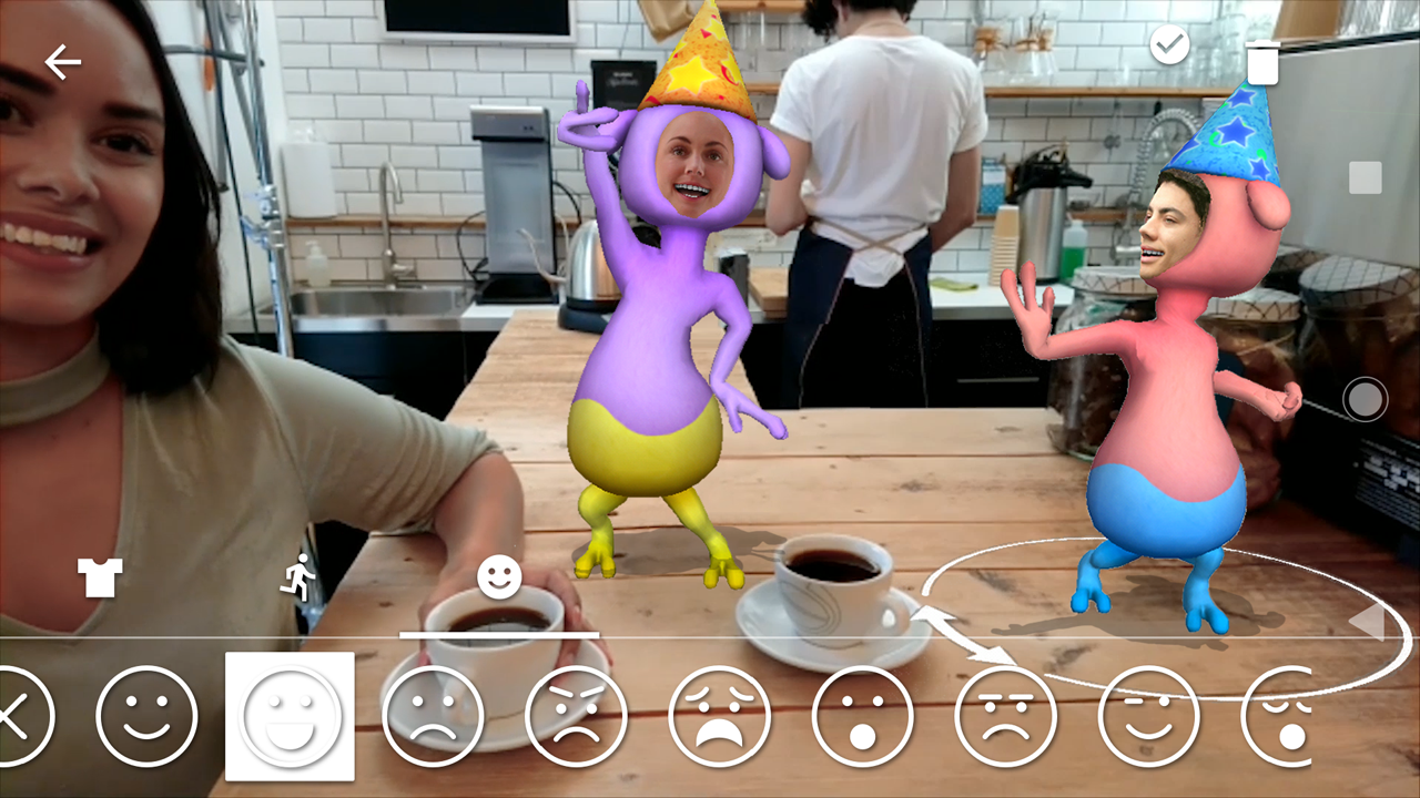 Add fun AR effects such as dinosaurs and more to your pictures and videos!