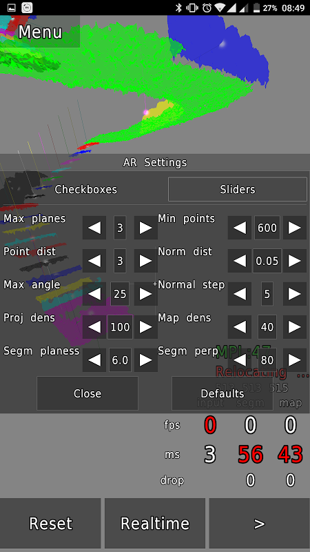 الگوریتم تقسیم بندی و ادغام هواپیما قادر به انجام 120 فریم در ثانیه بر روی یک کامپیوتر هشت هسته است. در خیر Phab 2 دستگاه آن را حدود 50 فریم در ثانیه.