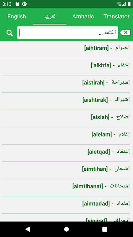فرهنگ لغت آمهری عربی انگلیسی با مترجم አረብኛ መዝገበ ቃላት