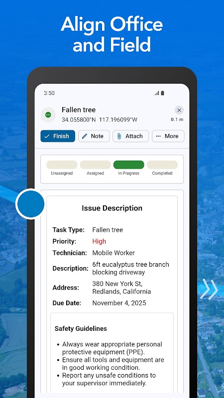 - برای رسیدن به داراییهای خود، از ادغام با برنامههای ناوبری گام به گام با راهنمای صوتی استفاده کنید.
