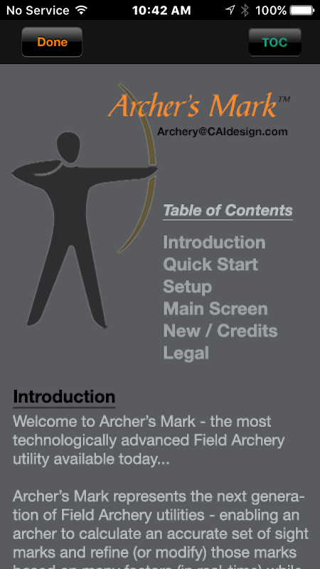 Archer's Mark نماینده نسل بعدی ابزارهای Field Archery است - این امکان را برای پیکان فراهم می کند تا مجموعه ای دقیق از علائم دید (Metric & Imperial) را محاسبه کند و آن علائم (به صورت انتخابی) را بر اساس عوامل زیادی (در زمان واقعی) محاسبه کند و در عین حال عکسبرداری کند دوره درست ...