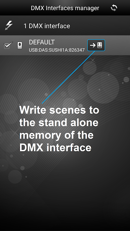 ایجاد صحنه های خود را با سطح مجموعه ای، و یا ایجاد خیره کننده تغییر رنگ پویا و توالی تیره. این نرم افزار کار بر روی USB و از طریق WiFi و متصل به یک رابط نورپردازی DMX سازگار است. کنترل چراغ های خود را در زمان واقعی، و یا انتقال صحنه خود را به رابط نورپردازی DMX در پایه اجرا می شود تنها.