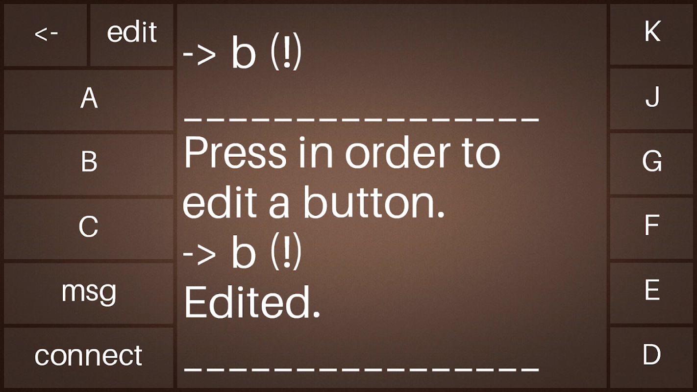 3. Double messaging which means that the app sends one message when you press on the button and another when you put away your finger. (The second message is translated into lower case symbols).