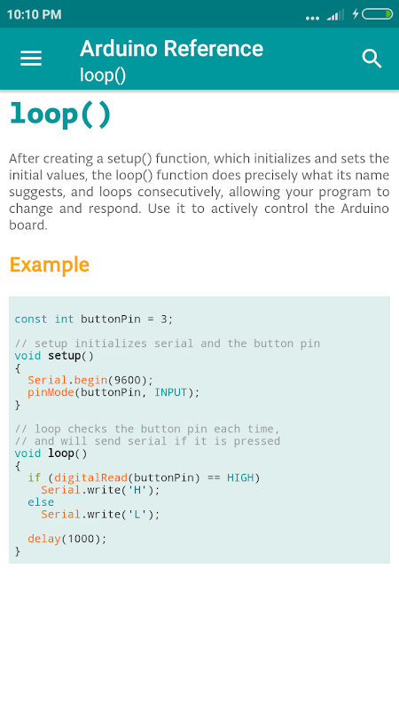 در این برنامه شامل تبلیغات و به طور بالقوه در برنامه خریدهای شما می توانید به محتوا آنلاین به صورت رایگان در www.arduino.cc/reference/en دسترسی
