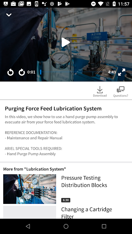 • تعمیر و نگهداری کمپرسور پریمیوم که شامل فیلم های مخصوص طبقه بندی کوتاهی است که به منظور آموزش بینندگان با مراحل مرحله به مرحله تولید شده از کتابچه های تعمیر و نگهداری آریل طراحی شده است.