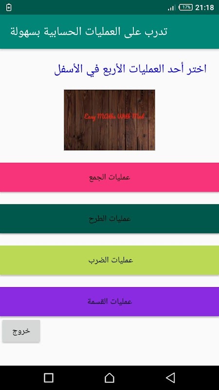 این برنامه برای آموزش چهار محاسبات بسیار آسان است. همچنین این امکان را به شما می دهد تا مستقیماً با جواب های خود ارتباط برقرار کرده و تصحیح کنید