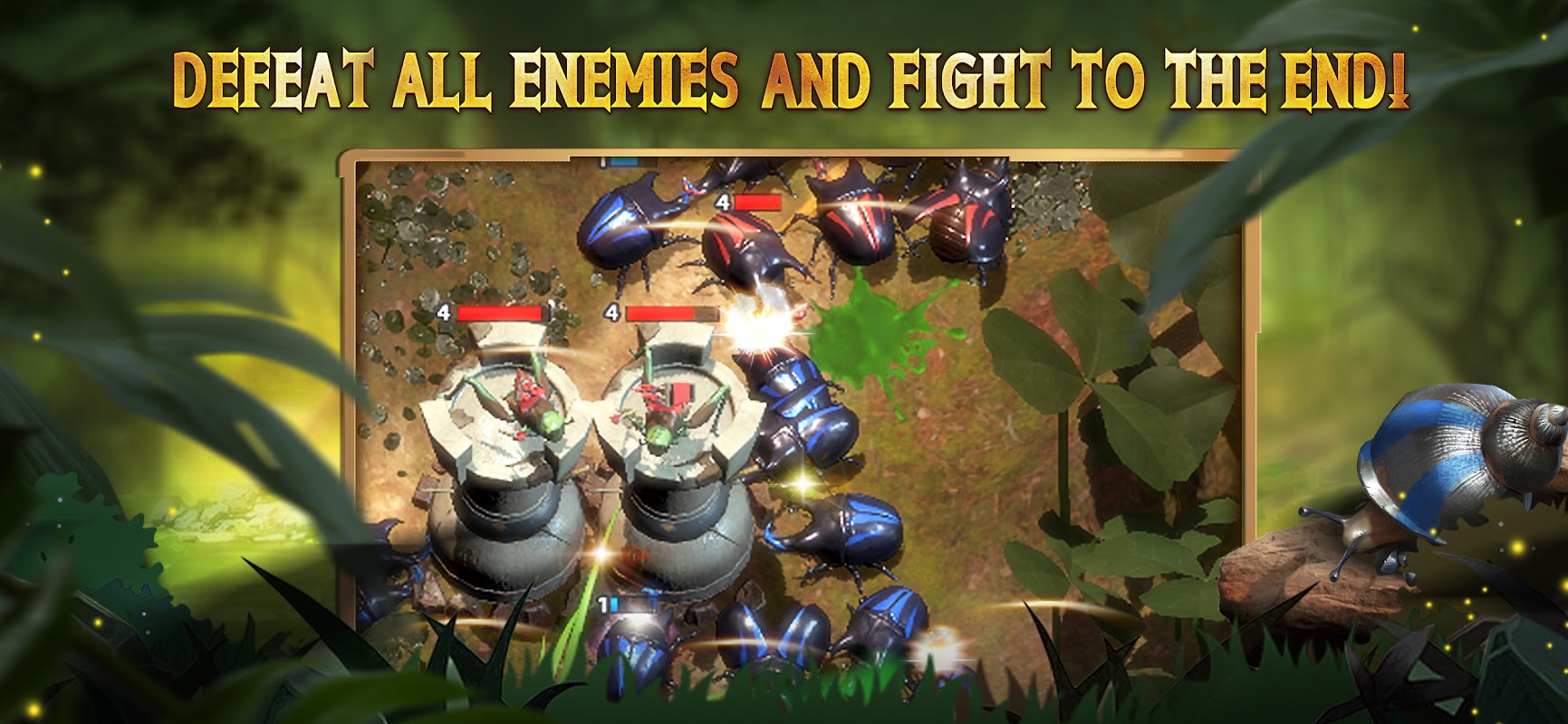 Discover new characters in this mysterious insect world. Level up your insects and forge them work together and fight to the end!