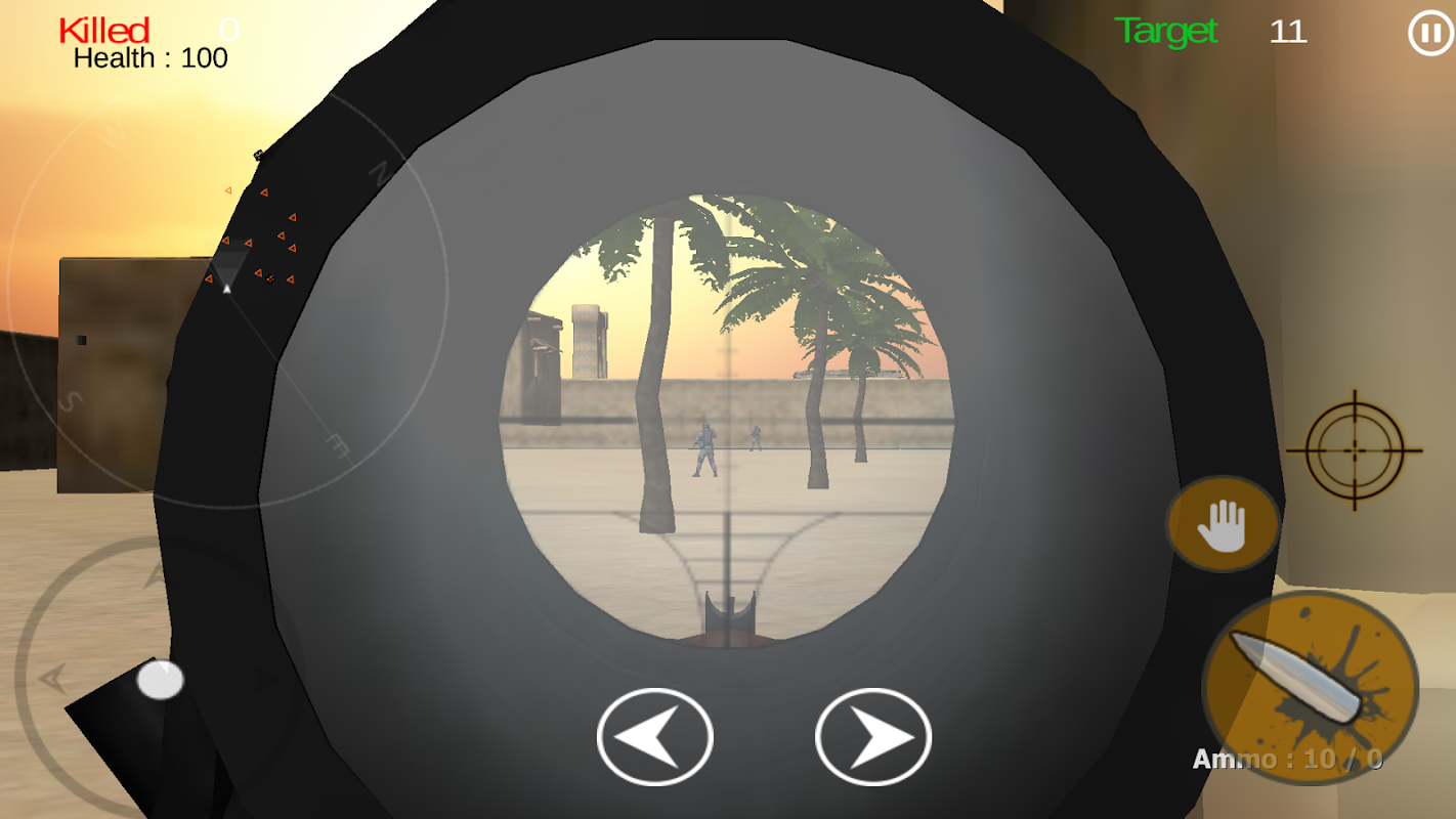 - fire button , with pick weapon button and zoom button is displayed at right bottom.