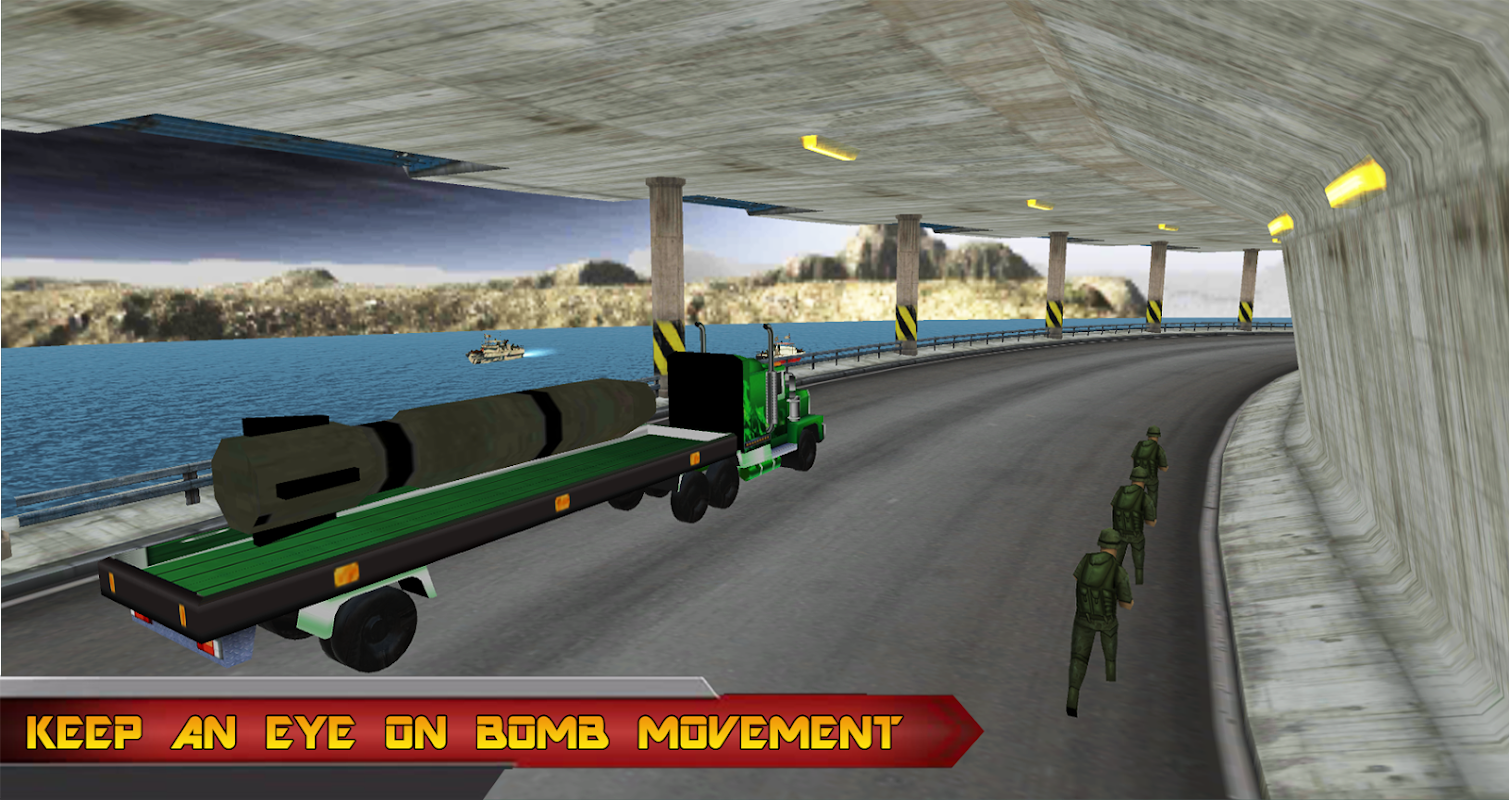 در این بازی سه بعدی شبیه ساز کامیون ارتش، شما سربازی هستید که تمام وسایل نقلیه ارتش را در انواع جاده ها در صورت نیاز مدیریت و اداره می کند و انواع محموله های خاص ارتش از جمله محموله، پرسنل و کالاهای خطرناک، تانک جنگی و سلاح جنگی را حمل می کند. بمب های موشکی حمل و نقل محموله را به دست آورید و محموله و تجهیزات مورد نیاز را تحویل دهید، خدمات رزمی را به اردوگاه ارتش تحویل دهید. عجله نکنید یا وسیله نقلیه خود را له نکنید در غیر این صورت تصادف خواهید کرد. یک سرباز شجاع باشید و به وسیله نقلیه خود با سربازان برخورد نکنید در غیر این صورت در ماموریت خود شکست خواهید خورد.