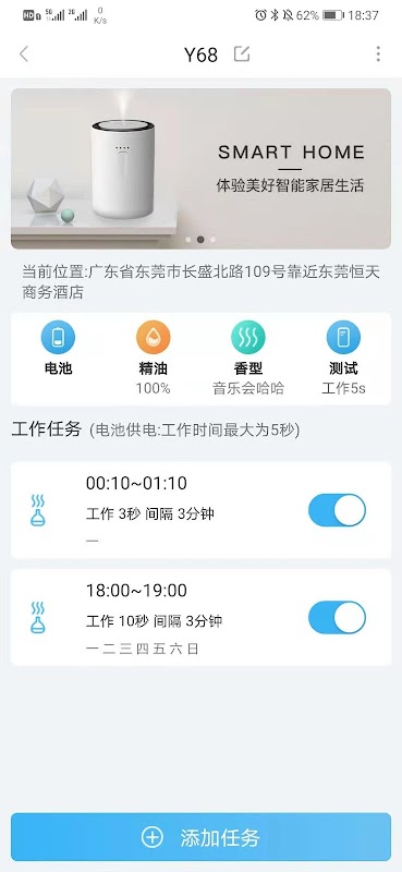 برای انجام کارهایی مانند روشن و خاموش کردن دستگاه ، تنظیم غلظت رایحه و روشن شدن منظم دستگاه عطر ، روی دستگاه جفت شده در صفحه اصلی کلیک کنید.