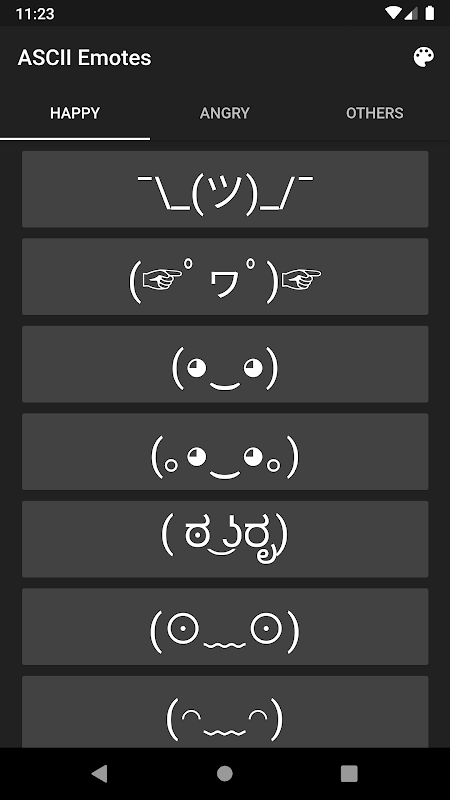 ASCII Emotes یک برنامه سبک وزن است که شامل لیستی از شکلک های ASCII است. برای کپی کردن شکلک ، به سادگی شکلک مورد علاقه خود را لمس کنید و به طور خودکار به کلیپ بورد شما اضافه می شود.