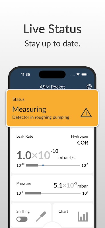 با برنامه ASM Pocket توسط Pfeiffer Vacuum، پتانسیل کامل نشت یاب ASM خود را باز کنید. یکپارچه دستگاه تلفن همراه خود را به یک کنترل از راه دور قدرتمند برای عملکرد دقیق تبدیل کنید. این برنامه طیف وسیعی از عملکردها را ارائه می دهد، از جمله تست های خلاء سخت از جمله ویژگی sniffing، نظارت بر زمان واقعی میزان نشت و فشار ورودی، کالیبراسیون و عملکرد صفر راحت.