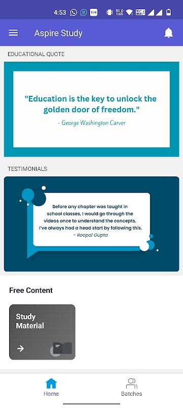 Aspire Study یک برنامه یادگیری پیشرفته است که برای دانش آموزانی که برای امتحانات داخلی کالج/دانشگاه، B.Pharma/B.Sc/BCA/M.Sc/MCA و سایر امتحانات رقابتی آماده می شوند طراحی شده است. این برنامه یک برنامه مطالعه جامع، راهنمایی های تخصصی و تست های تمرینی را برای کمک به دانش آموزان برای آماده شدن برای امتحانات ارائه می دهد. این برنامه برای ارائه تجربیات یادگیری شخصی و گزارش های پیشرفت در زمان واقعی طراحی شده است تا به دانش آموزان کمک کند تا پیشرفت خود را ردیابی کنند و مناطقی را که نیاز به بهبود دارند شناسایی کنند. با Aspire Study، دانش آموزان می توانند به اهداف تحصیلی خود برسند و در امتحانات خود موفق شوند.