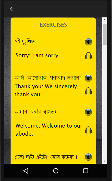 * Every Assamese to English learning chapter ensures that your speaking fluency gets further enhanced.