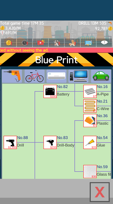 1. The Factory Line Game is to make intermediate products as base materials and 5 final products.