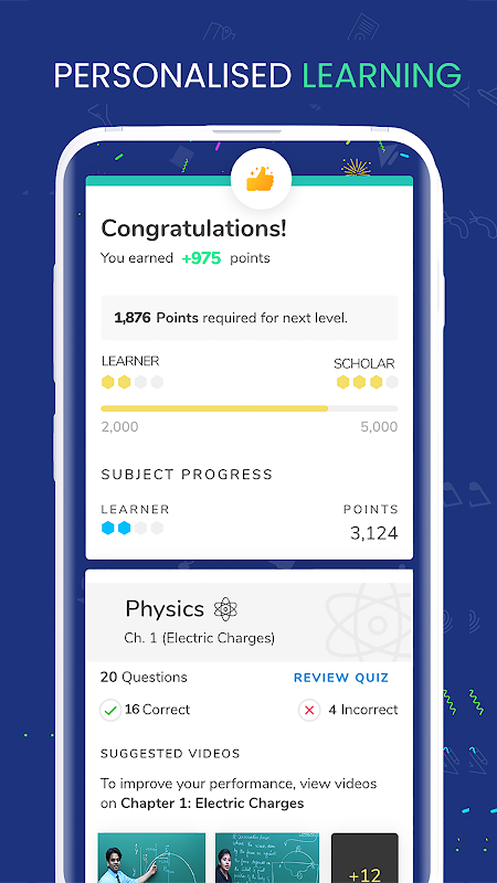 آماده سازی امتحان: به انبوهی از مواد درسی، سوالات تمرینی و تست های آزمایشی متناسب با آزمون های مختلف رقابتی، از جمله هزاران ویدیو در هر موضوع، فصل و موضوع با بررسی و رتبه بندی کاربر دسترسی داشته باشید، از هر موضوعی از VI- XII CBSE، ICSE انتخاب کنید. ، و برنامه درسی هیئت دولت.