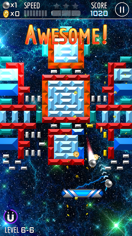 ☆ Upgrades. Clear levels to gain coins and upgrade your paddle or power-ups - 10 available.