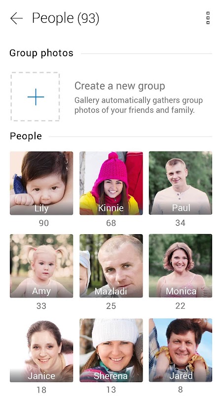 Gallery detects the scenes and objects in photos, and uses the results to classify them into scene albums. It helps you to sort and arrange photos, and let you search specific photos more easily.