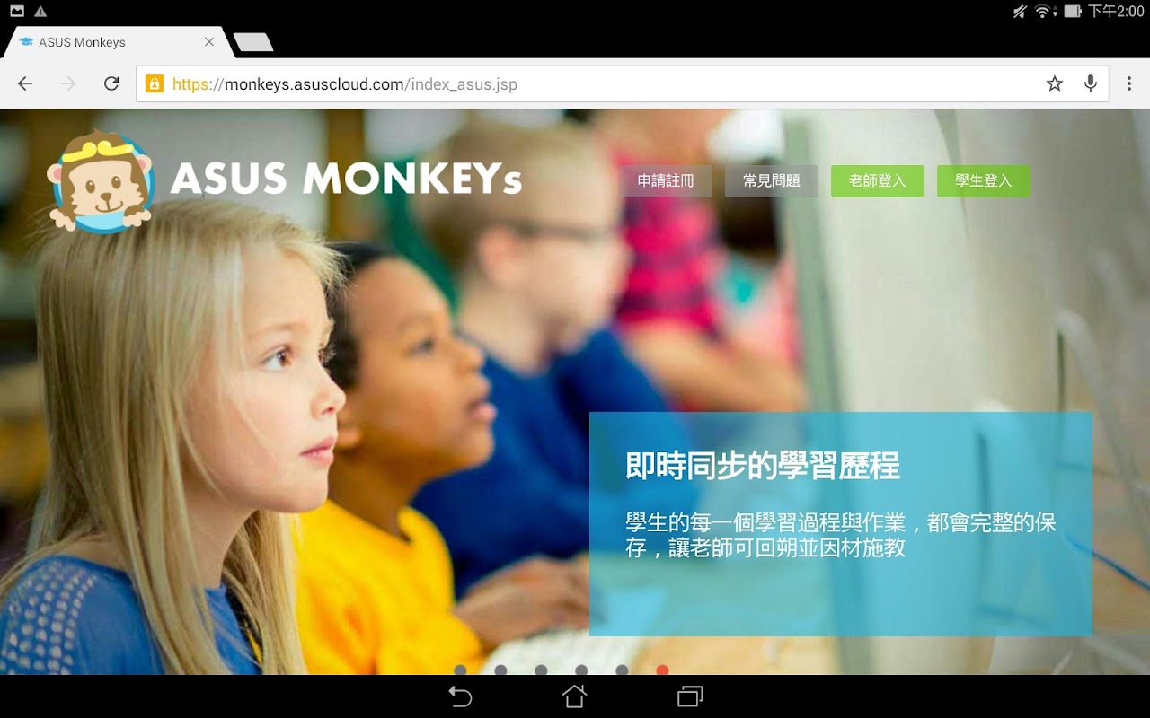 ASUS Monkeys 是一套教學管理系統,提供老師與學生在課前、課中與課後,能夠將學習的紀錄儲存在管理系統上,並隨時地檢視教學紀錄或學習的歷程。
