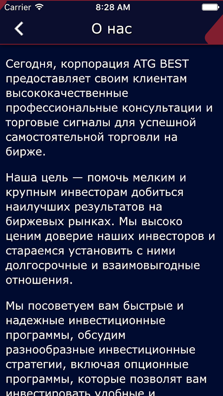 در این برنامه شما تمام اطلاعات لازم را برای شما در خدمات شرکت ATG بهترین، و همچنین ویدئویی و صوتی ارائه شده است. علاوه بر این، شما در دسترس خواهد بود به شرکت در گزینه های بازی، که در آن برای استفاده از نرم افزار، تبلیغات و ارتقاء خدمات شرکت سکه های طلا ATG بهترین به شما اهدا خواهد شد. تمام سکه به دست آورده، که سخاوتمندانه هستند به شما عطا شرکت ATG BEST، شما می توانید دو بار در ماه برای تبدیل به دلار واقعی و کارت بانکی خود را به ارمغان بیاورد.
