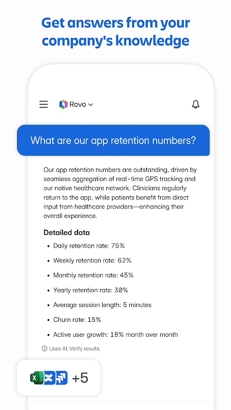 با Rovo Mobile، قدرت یک همتیمی هوش مصنوعیِ متناسب با کار را در جیب خود خواهید داشت. کار را در هر کجا که هستید، با مکالماتی که همیشه در بین دستگاهها همگامسازی میشوند، ادامه دهید.