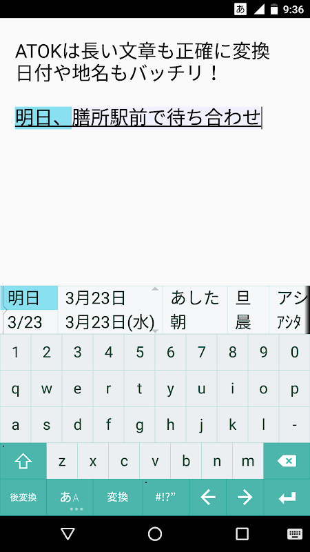 ・スマートフォン、タブレットで軽快に動作するように設計された【ATOK for Android お試し版】です。