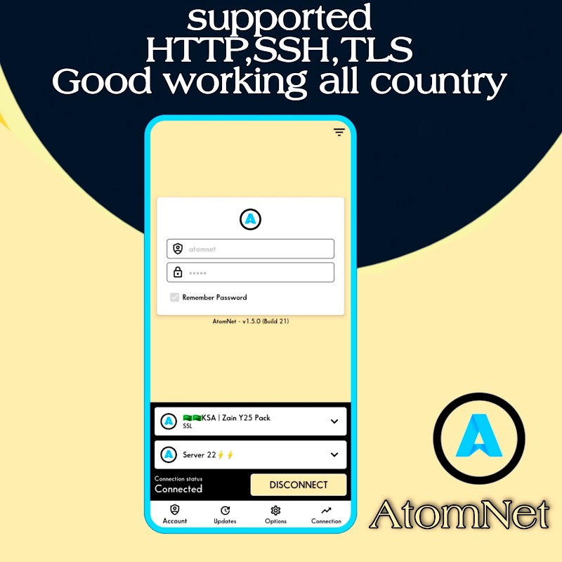 با اتصال ATOM Net، IP/Location شما تغییر می کند و به رفع انسداد همه وب سایت ها و برنامه هایی که در کشور شما مسدود شده اند اجازه می دهد.